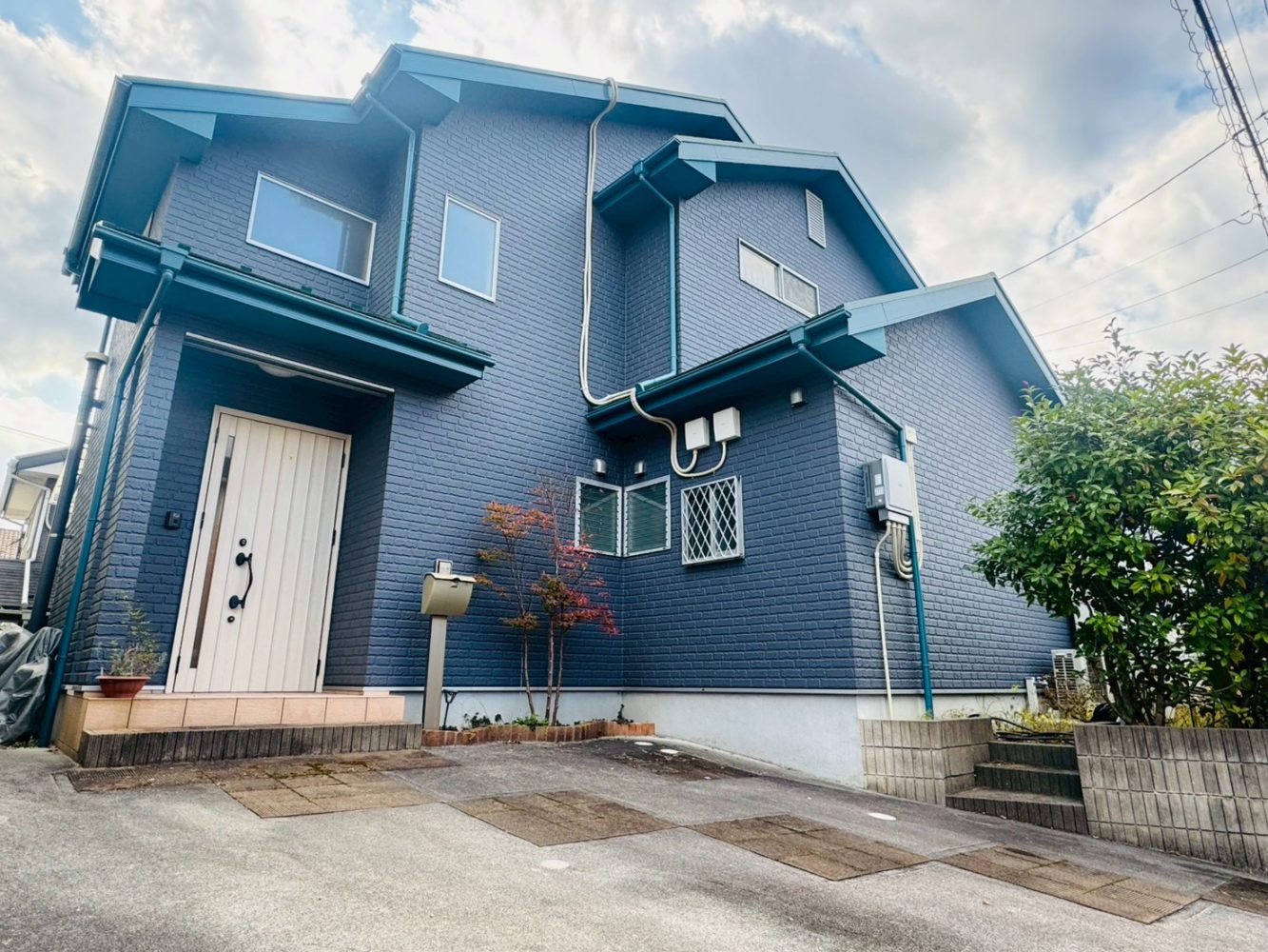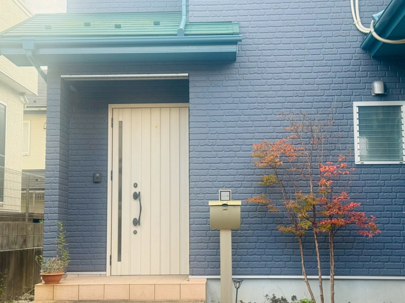 でも、この街並みに立ってみると不思議と浮かない。「あ、この家ちょっと楽しんでるな」という感じの、いい意味でのアクセント感。道を歩くたびに、青いプレゼントボックスみたいなこの家が視界に飛び込んできて、ちょっとだけ気分が上がります。